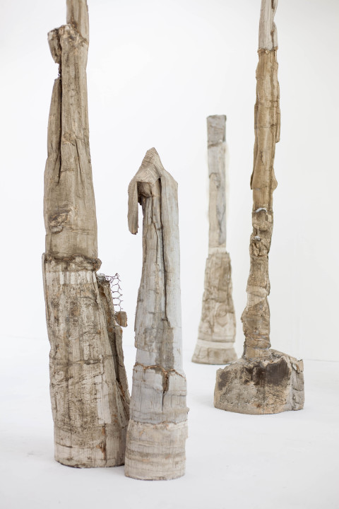 Second image: Valentino Vannini, ANON – DTF, Concrete, insultation foam, metal, branches, glass, petroleum jelly, lube, 2024